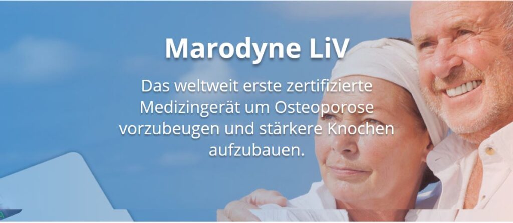 Marodyne LiV – entwickelt zusammen mit der NASA für Astronauten und von uns für den täglichen Gebrauch bei Ihnen. Marodyne LiV- Low intensity Vibration- die täglichen 10-Minuten für starke Knochen Schop Shop Marodyne LiVNatürliche Osteoporse-PräventionPräventionVibration niedriger Intensität – Low-intensity VibrationKlinisch erprobtSolide, wissenschaftliche Erfahrung und fundierte Ergebnisse Indikationen Osteoporose- Poröse oder spröde Knochen meist hormonale oder altersbedingte VeränderungOsteopenie- Erhalt/Erhöhung der KnochendichteKnochenschwund bei Kindern und Jugendlicher Reduziert SchmerzenPosturale Stabilität Verbesserung der Balance und Koordination.Sturzprofilaxe bei älteren MenschenRehabilitation nach Operationen Bewegungsmangel zum Aufbau der GrundmuskulaturSarkopenie bei altersbedingter MuskelschwächeErgänzende Behandlung bei DiabetesErgänzende Behandlung bei FettleibigkeitFörderung der Durchblutung Interview Dr. Clinton Ruben Downloads Broschüre IFU